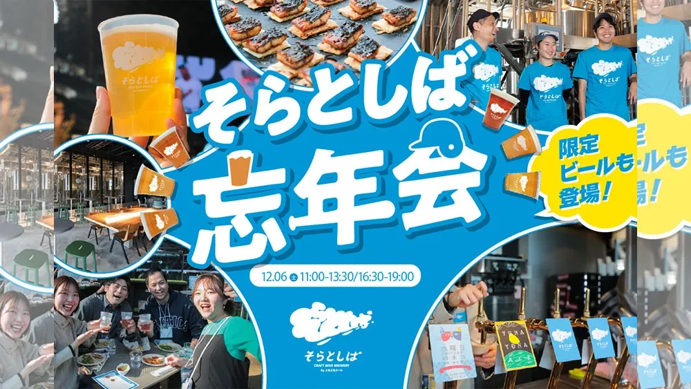 エスコンフィールドHOKKAIDO内のクラフトビール醸造レストラン「そらとしば by よなよなエール」にて、4回目となる飲み会イベント「そらとしば忘年会2025」12月6日(土)に開催します。