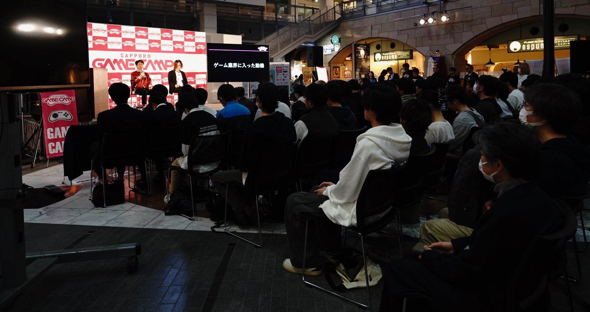 2022年の初回開催から運営協力会社数を増やし、来場者数の増加を踏まえたイベント会場へと刷新。新たなコンテンツとして、3DCGデザインの基礎を学ぶことができる「はじめてのCG講座」も加えるなど、イベント規模や内容を拡充して実施しました。当日は札幌市内外から「Game Jam(ゲームジャム)」、 「プログラミング教室」、「トークセッション」を含めて3日間で延べ1,400人が来場。ゲーム開発の体験やプログラミング学習のほか、実際にゲームを開発しているプロの講演を通じて、幅広い世代にゲーム業界のことを知ってもらいました。