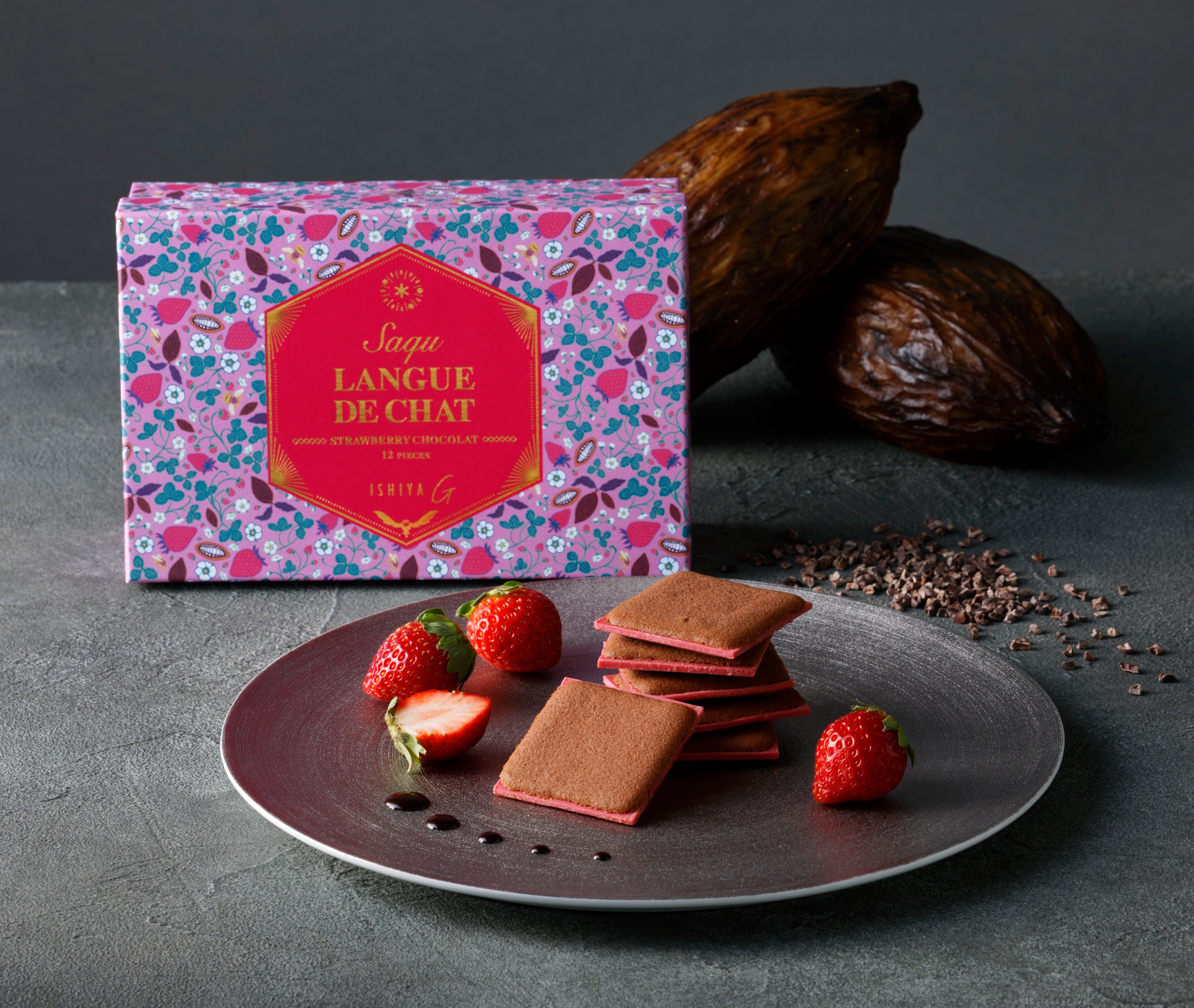 ISHIYA Gの大人気商品「サク ラング・ド・シャ」から、新フレーバー「ストロベリーショコラ」が登場。寒い冬に食べたくなるチョコレートに甘酸っぱい苺を掛け合わせました。