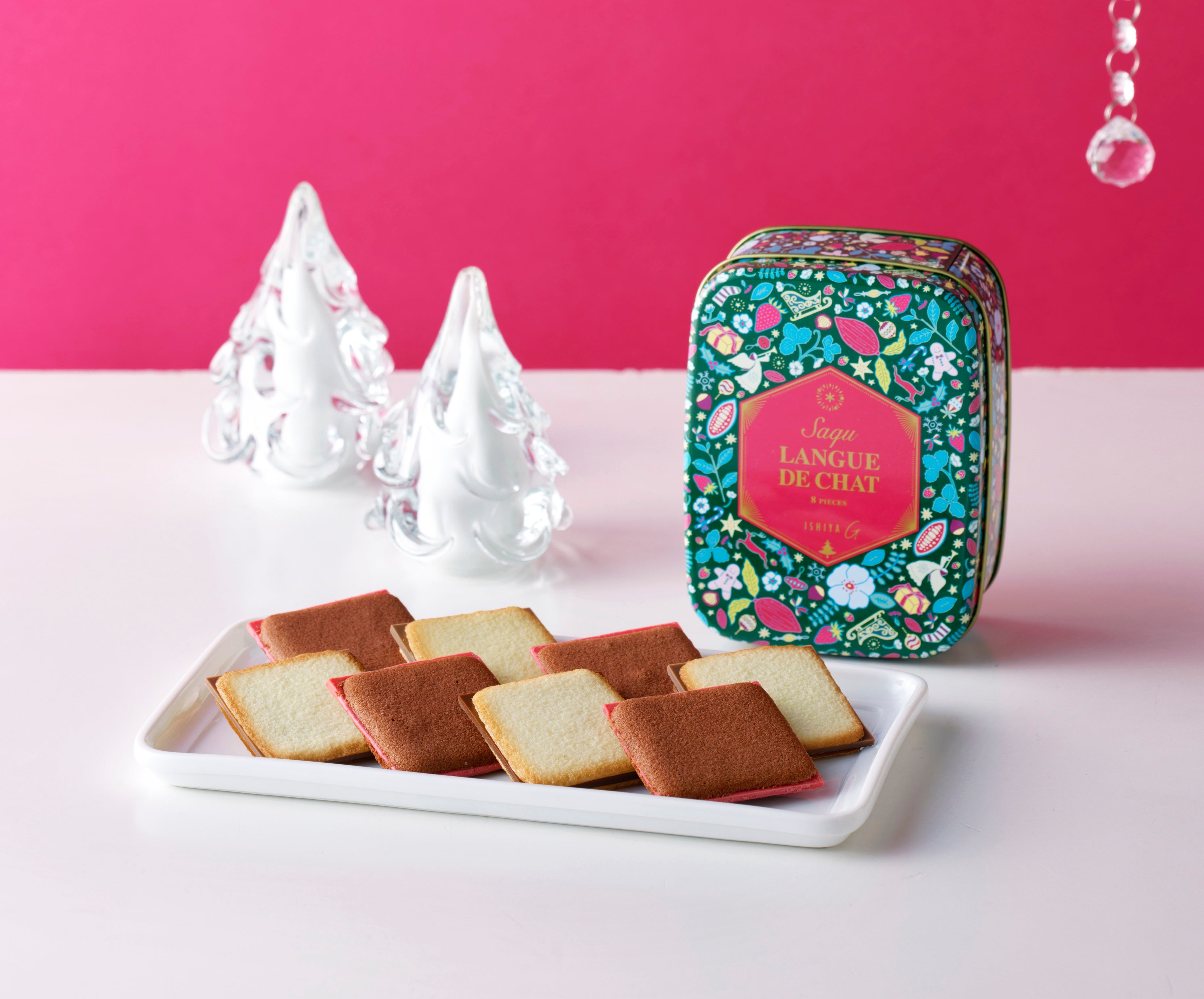 そのほか、バッグのように持ち歩きたくなる可愛らしいパッケージにISHIYA Gの定番商品を詰め合わせた「クリスマスバッグ」や、クリスマスモチーフが輝く華やかな缶が印象的な「サク ラング・ド・シャ クリスマスアソート8枚入」は贈り物だけではなく、ちょっとした自分へのご褒美にもピッタリです。