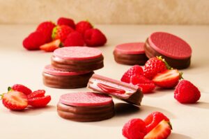 華やかなダージリンティーのチョコと甘酸っぱいベリーのフルーティーな味わい。ドライストロベリー、ドライフランボワーズの酸味とフィアンティーヌの食感も楽しめます。