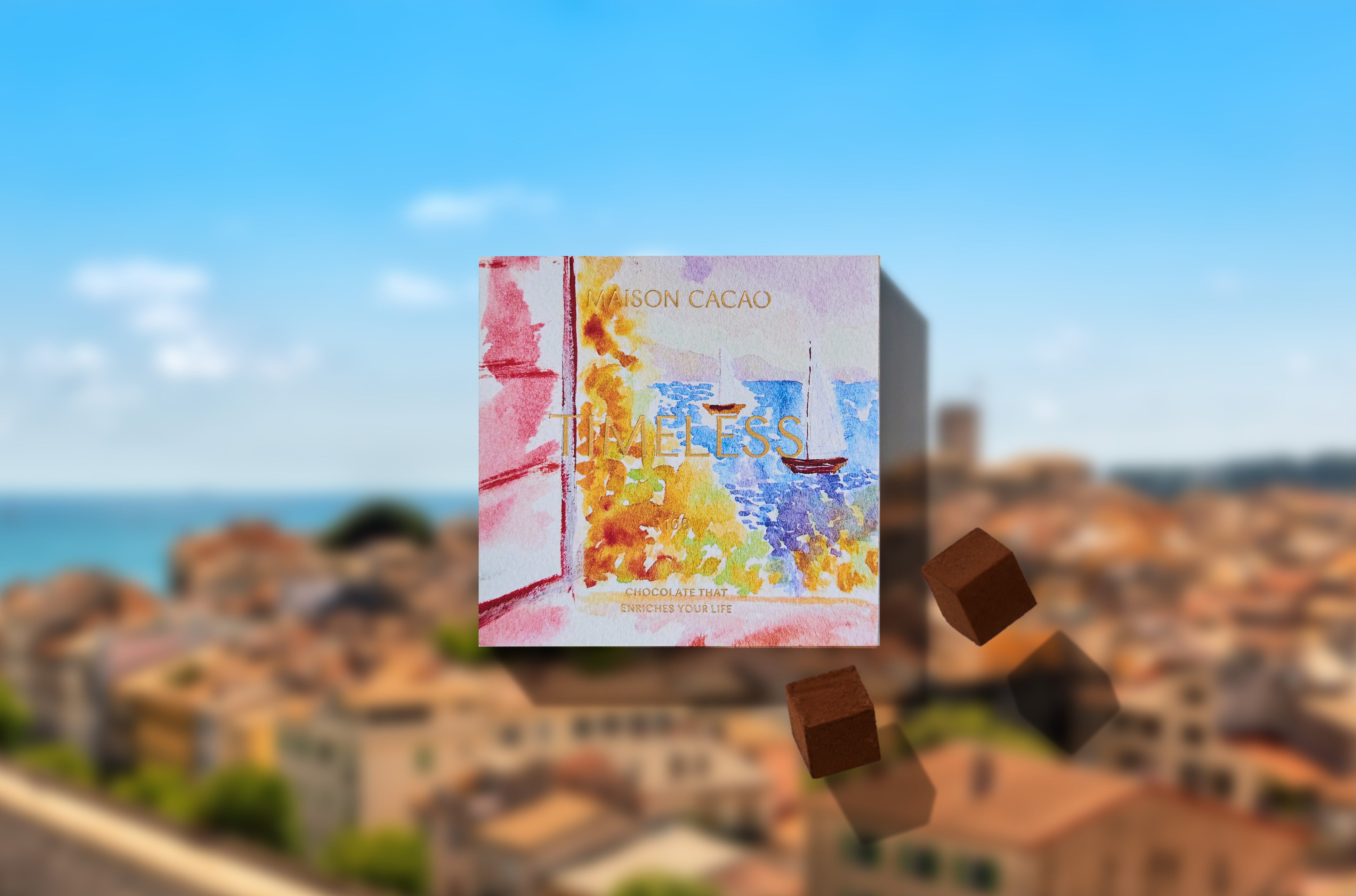 南イタリア・ポジターノの景色を描いたアートボックスの中には、太陽をたっぷり浴びたレモンの眩しい酸味と、軽やかなオリーブオイルを合わせた、風薫る透明感のある味わいのチョコレート。瑞々しいフレッシュレモンの美味しさを、カカオのフルーティさが魅力のミルクチョコレートが引き立てます。