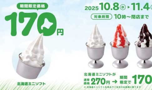 株式会社アレフ(本社:北海道札幌市、代表取締役社長:庄司 大)が展開するハンバーグレストラン「びっくりドンキー」は、10月8日(水)〜11月4日(火)の期間限定で、通常価格270円(税込)の「北海道ミニソフト」「北海道ミ…