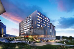 「カヤツリタウン」の入り口には、ポケモンを回復させる施設としてゲームでおなじみの「ポケモンセンター」があります。グッズ購入やオリジナルドリンク、フードが楽しめるショップも並んでいます。
