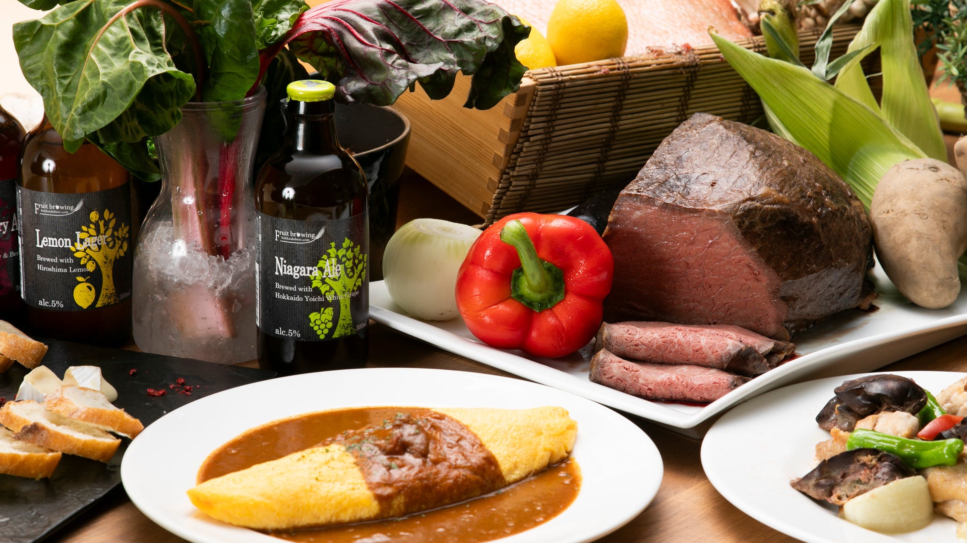 ・猿払ホタテと愛別きのこのパエリア ・豊富牛乳使用チキンのクリームシチュー ・かみふらのポークのしゃぶしゃぶ ・富良野メロンのモンブラン など |