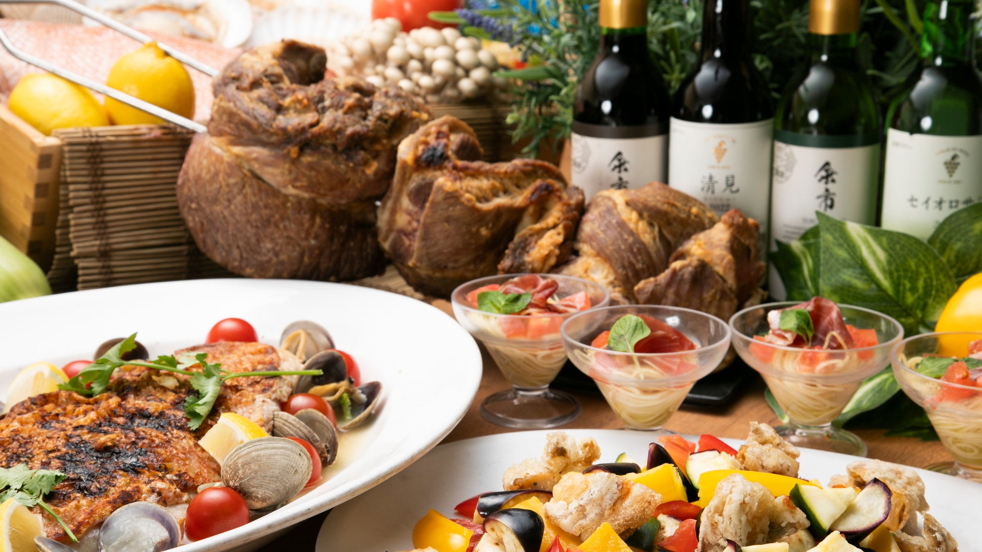 ・噴火湾産ホタテ貝と道南野菜のバターソテー ・函館牛乳で作るチキンのフリカッセ ・日高昆布出汁のアクアパッツァ ・みよいかぼちゃのモンブラン など |