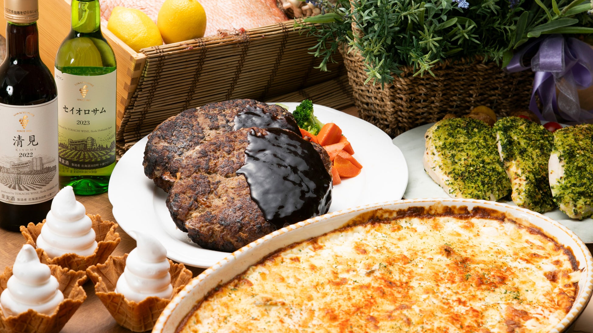 ・中札内鶏むね肉香草パン粉焼き ・知床鶏と十勝マッシュルームのフリカッセ ・羅臼産たこのしゃぶしゃぶ ・十勝じゃがいものモンブラン など |