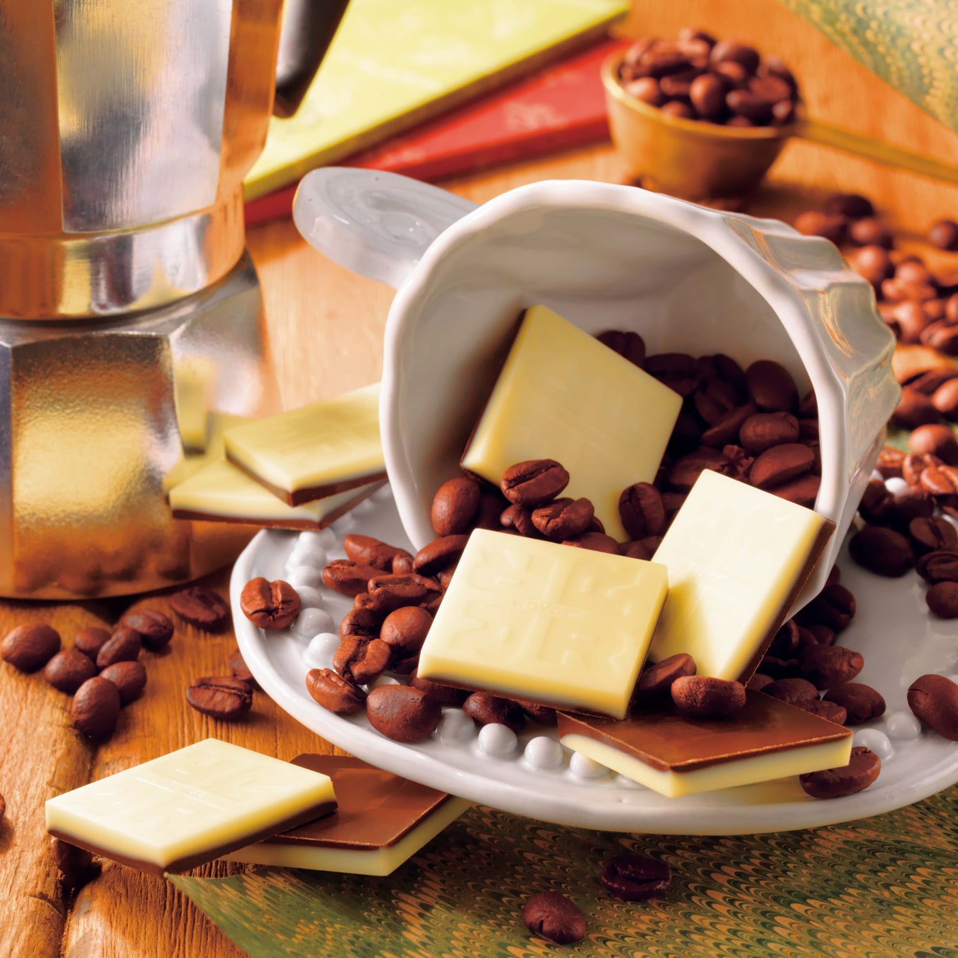 濃厚で強い香りと苦みのエスプレッソに砂糖をたっぷり入れて飲み干す、イタリアならではの飲み方をイメージしたチョコレートです。ほろ苦く芳醇なコーヒーを使ったチョコレートの層とやさしい甘さのホワイトチョコレートの層を2層に重ねて仕上げた、大人好みの味わいです。