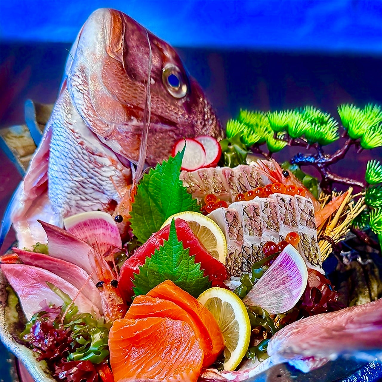 うおぎゅう琴似店限定で、鯛の姿付き刺身5点盛り 「晴れ盛り」 を提供いたします。